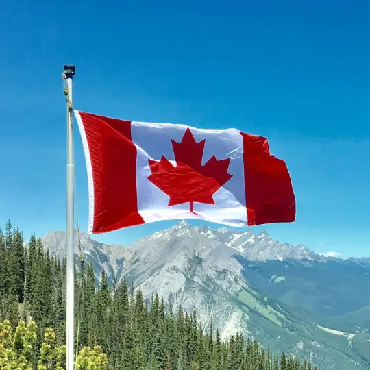 Kanadische Flagge an Fahnenmast vor Landschaft für LLP Gründung